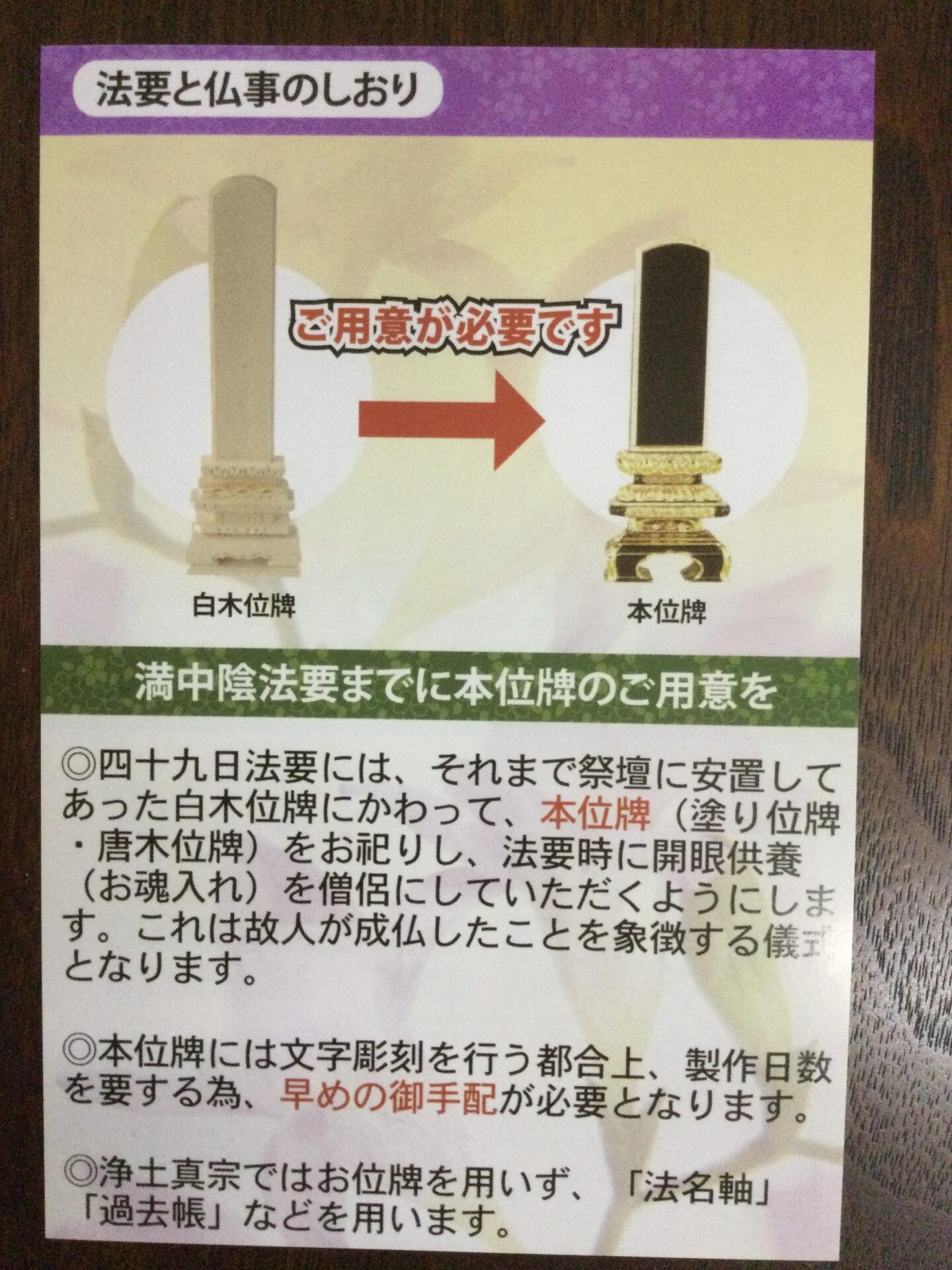 満中陰法要までに本位牌のご用意をお奨め致します。