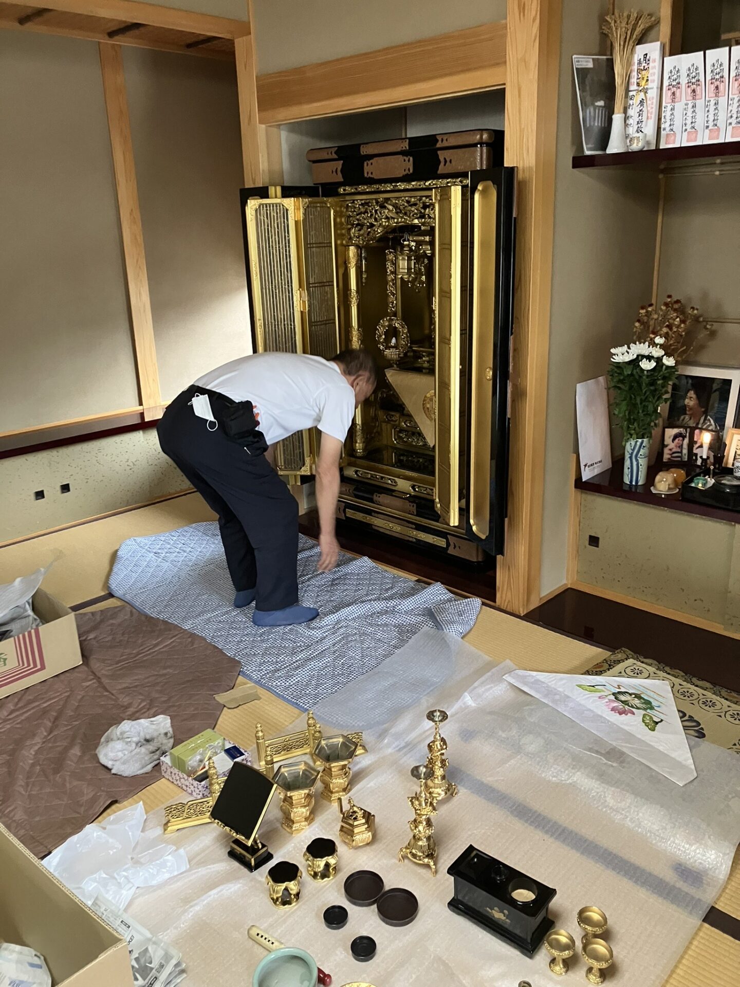 お家でお使い頂いてます大切なお仏壇を私共専門スタッフがお伺いさせて頂き、基本的には当日中にお仏壇お掃除をまごころ込めて作業させて頂きます。